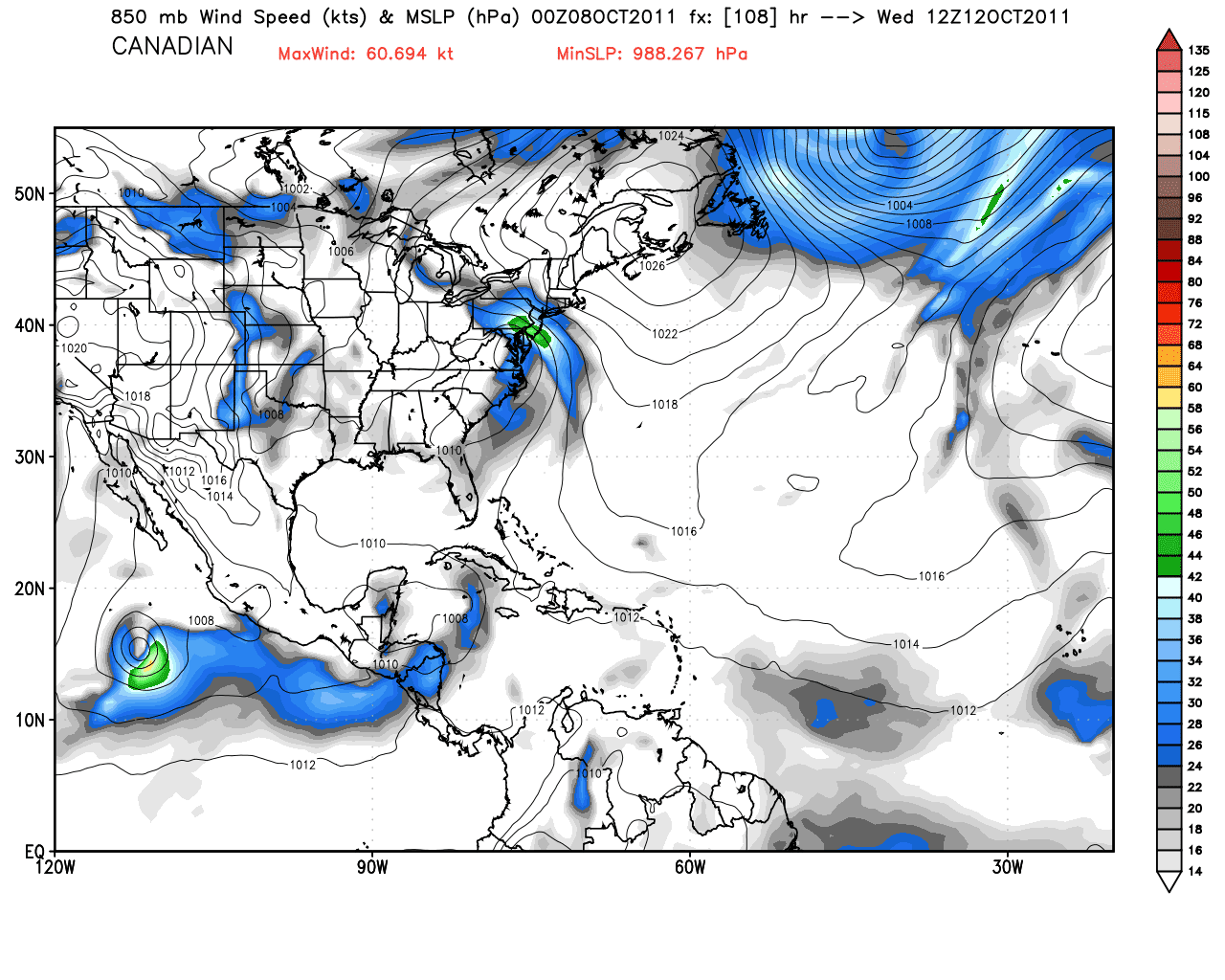 Here is the Canadian's depiction of this system. The first map shows tropical development by Monday. The 2nd is for Wednesday and clearly develops a rainy scenario for the middle of next week with a 1004 mb low over the Chesapeake Bay. So the jury is clearly still out! Not sure which yet to believe.